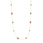 Este collar largo cae con gracia, como un reflejo de la fortaleza y la delicadeza de quien lo lleva.