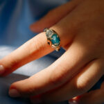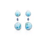 US$995Este colgante de larimar combina un diseño audaz con la serenidad de la piedra. Su tono azul profundo refleja la energía y la intensidad del atardecer, creando una pieza única que no pasa desapercibida