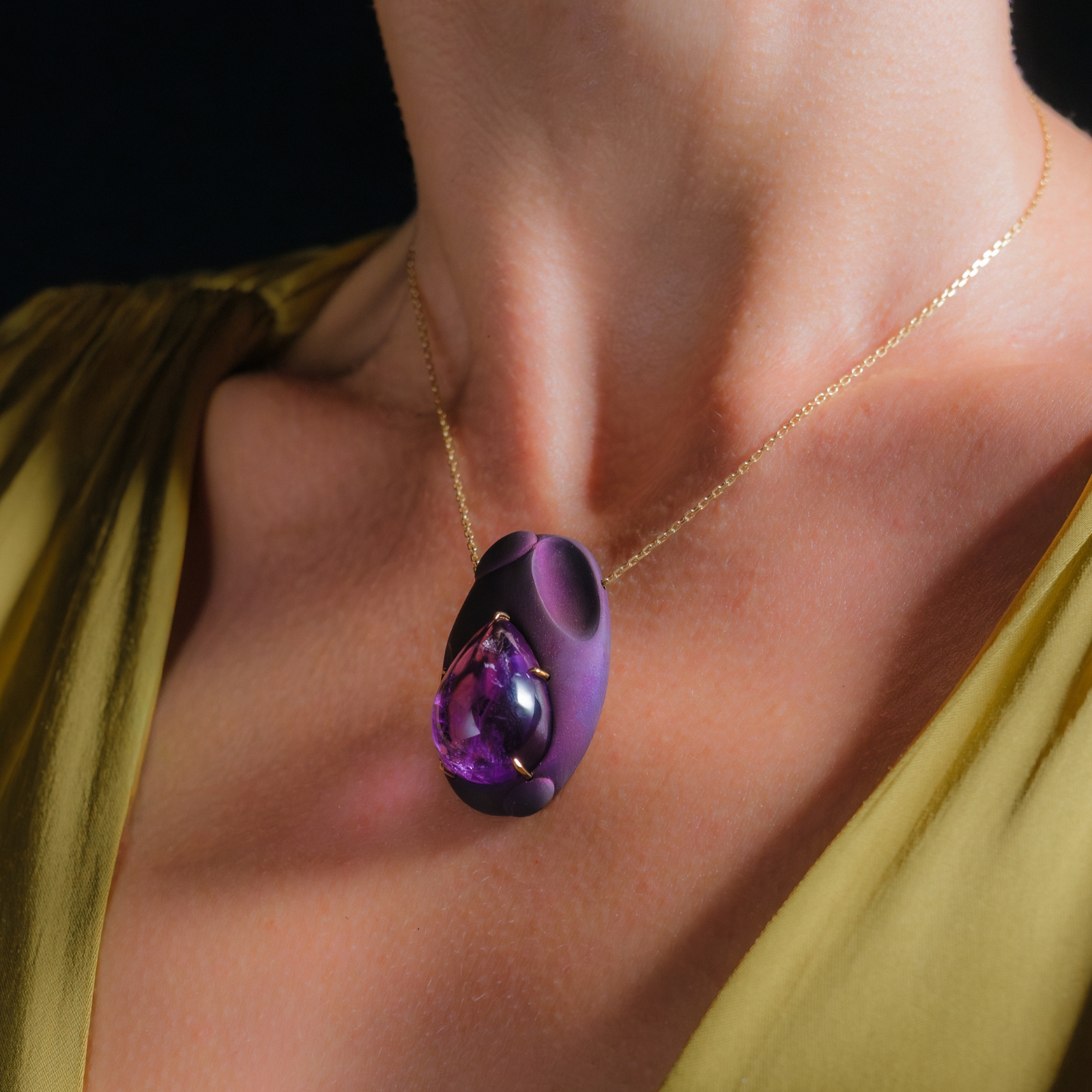 Amethyst set in anodized titanium and 18k gold.