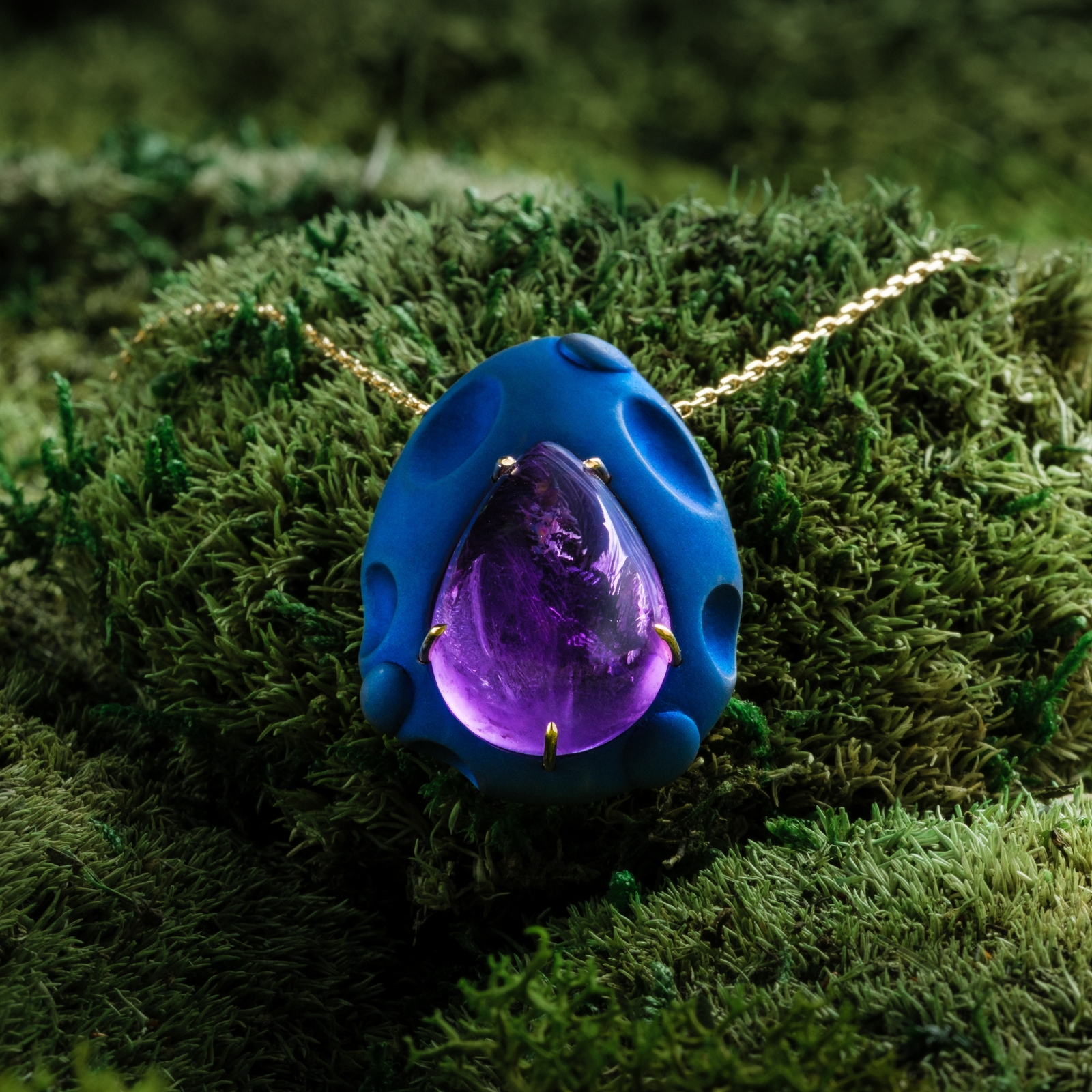 Amethyst set in anodized titanium and 18k gold.